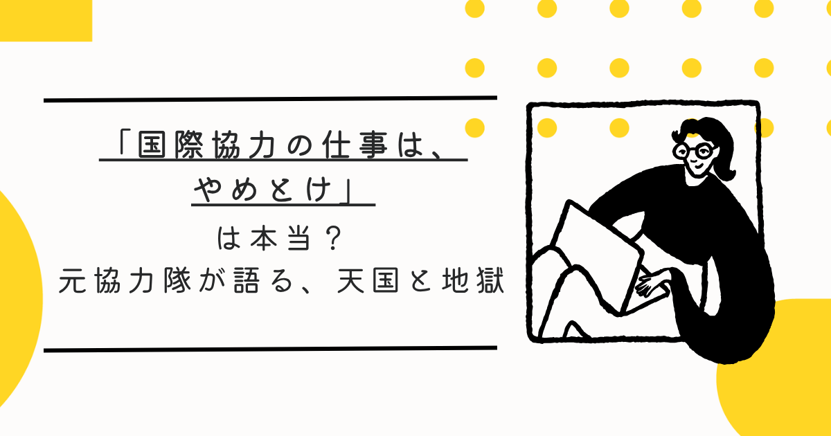 「国際協力の仕事は、やめとけ」は本当?元協力隊が語る、天国と地獄