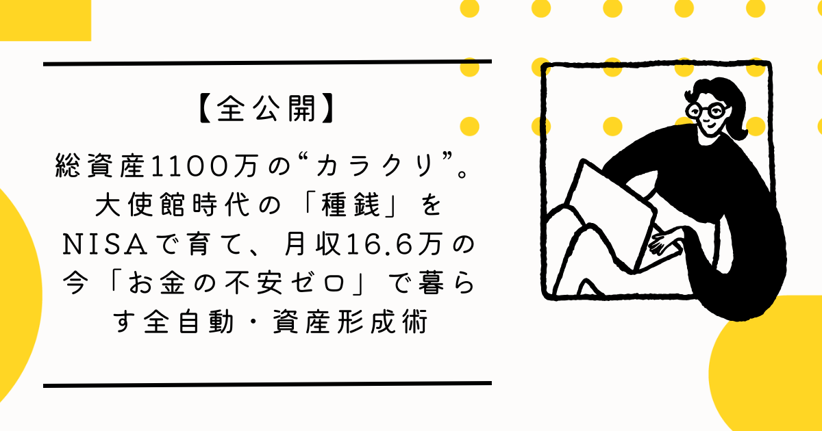 【全公開】総資産1100万の“カラクリ”。大使館時代の「種銭」をNISAで育て、月収16.6万の今「お金の不安ゼロ」で暮らす全自動・資産形成術
